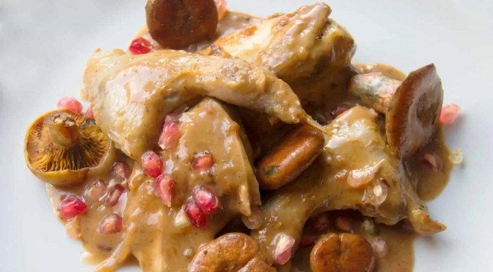 Receta de guiso de conejo con níscalos y granada - Cocineando.com Cocineando.com