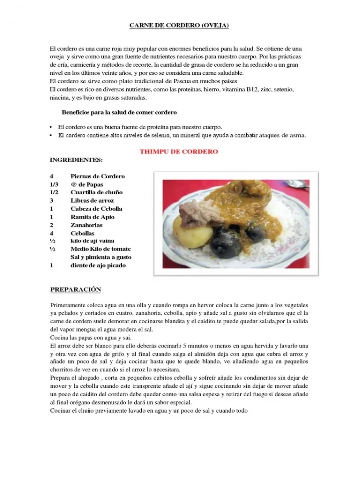 THIMPU DE CORDERO: SABOR ANDINO PARA EL ALMA