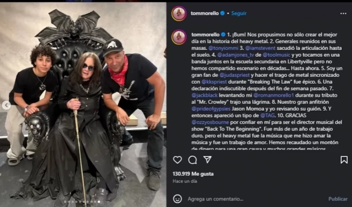 Frente a 40.000 espectadores, Osbourne, sentado en un trono negro, interpretó clásicos como “Paranoid” y “Crazy Train”. Morello describió la atmósfera como un reconocimiento profundo al legado del músico. “La banda pudo tocar y sentir el cariño no solo de las otras bandas, no solo de las 40.000 personas en el estadio, sino de gente de todo el mundo”, relató Morello a la revista PEOPLE.