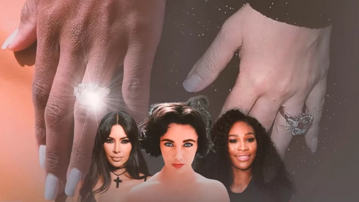 Kim Kardashian: Kanye West le propuso matrimonio con un anillo de 15 quilates diseñado por Lorraine Schwartz, valorado en $8 millones de dólares. Posteriormente, el rapero le obsequió una segunda pieza, valorada en $4 millones, que fue robada durante un asalto en París en 2016.