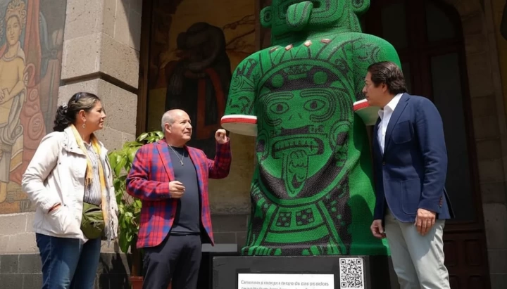 El Museo Vivo del Muralismo en Ciudad de México inauguró este miércoles una exposición de esculturas monumentales del artista César Menchaca, quien utiliza la técnica tradicional wixárika para intervenir piezas relacionadas con el fútbol. La muestra, integrada por obras recubiertas con millones de chaquiras de cristal, forma parte de las actividades culturales previas a la Copa del Mundo de 2026.