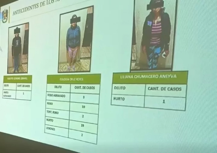 La principal detenida, identificada como Eulogia Cruz Reyes, posee una trayectoria criminal que incluye 19 denuncias por hurto, 10 por robo, tres por robo agravado, dos por tentativa de robo y dos por lesiones. Pese a este historial, la mujer continuaba operando en espacios públicos. Sus cómplices también registran antecedentes penales por delitos contra la propiedad, lo que sugiere una estructura dedicada a este tipo de ilícitos bajo la modalidad de distracción.
