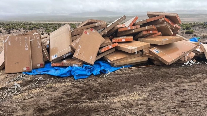 En el sector de Colchane, los efectivos recuperaron 178 televisores de alta gama que habían sido abandonados por los sospechosos al percatarse de la presencia policial. Las imágenes del operativo muestran decenas de cajas apiladas a un costado del camino, en una zona utilizada frecuentemente para el tránsito de mercadería ilícita. De acuerdo con el reporte oficial, los responsables huyeron del lugar antes de ser capturados.